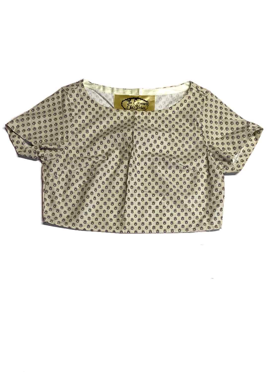 Beige floral patterned cotton crop top – ref 233 – Resale item – Approx UK 10-12