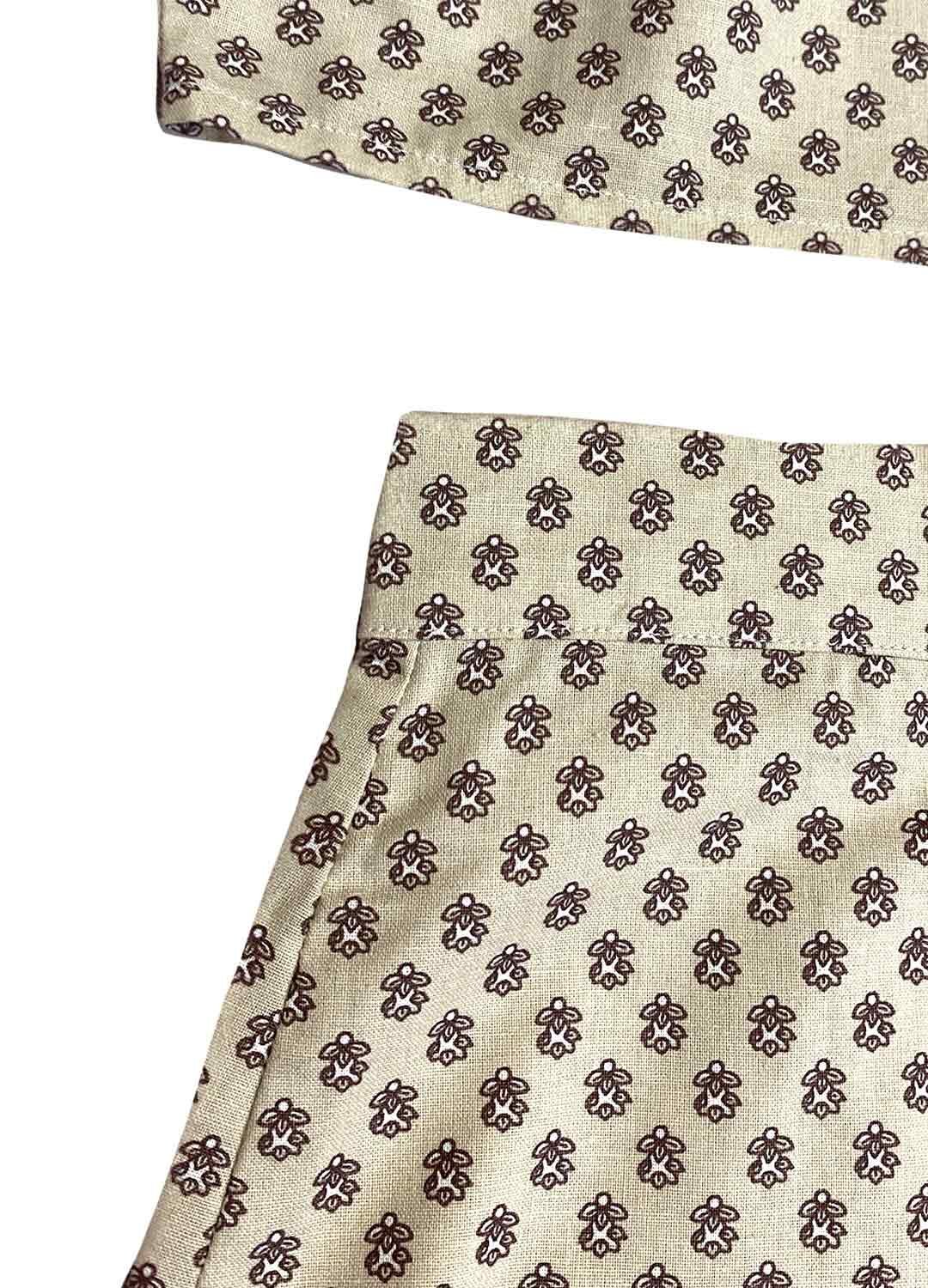 Beige floral patterned cotton pencil skirt two piece – Ref 233/234 – Resale item – UK 10-12