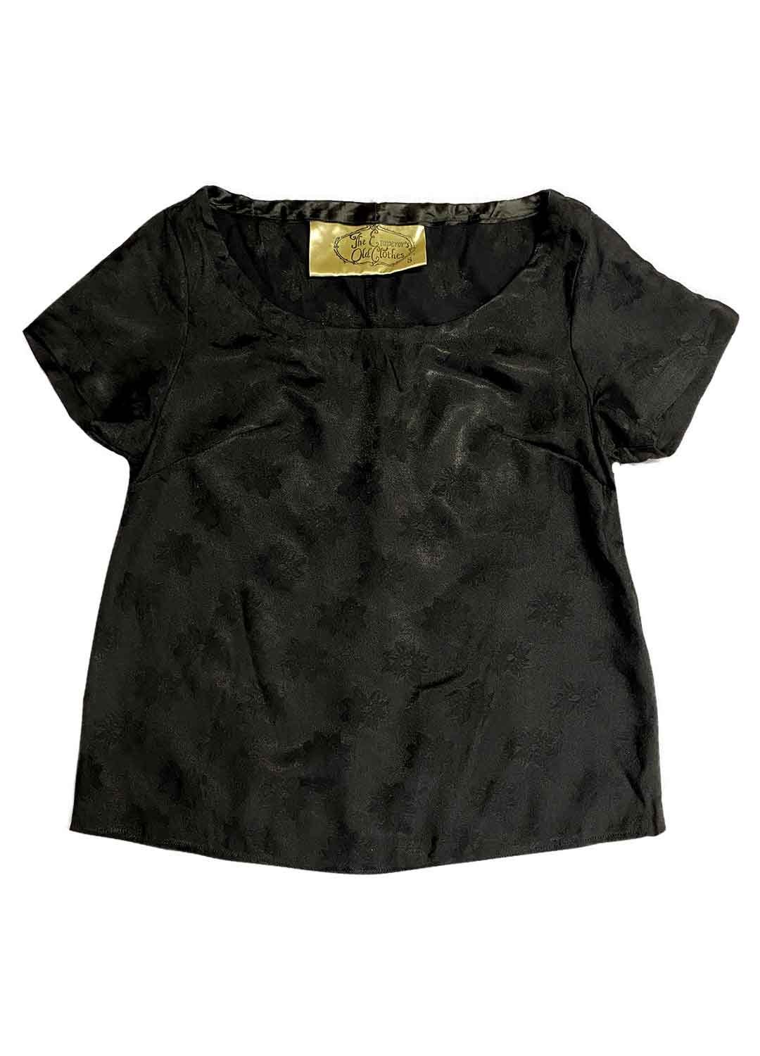 Black Floral Satin Tee – ref 237 – Resale item – Approx 6-8