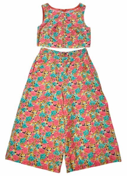 Cream big bloom print satin culottes two piece – ref 168 – Resale item – Approx UK 14-16Cream big bloom print satin culottes two piece – ref 168 – Resale item – Approx UK 14-16
