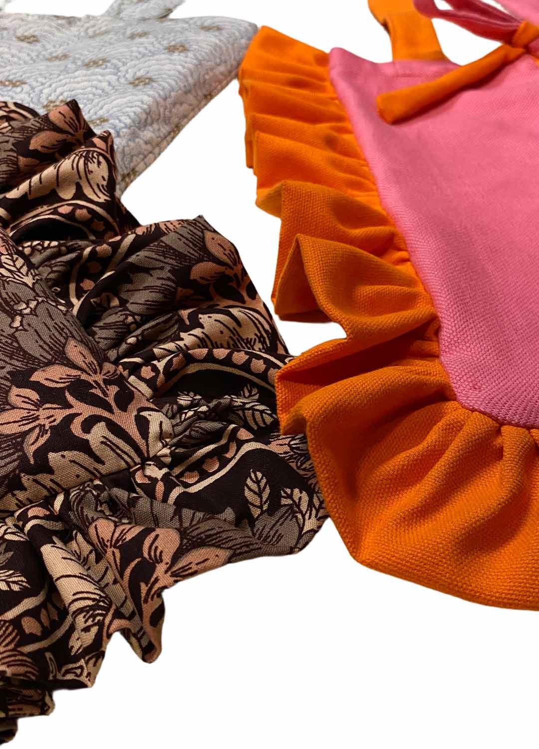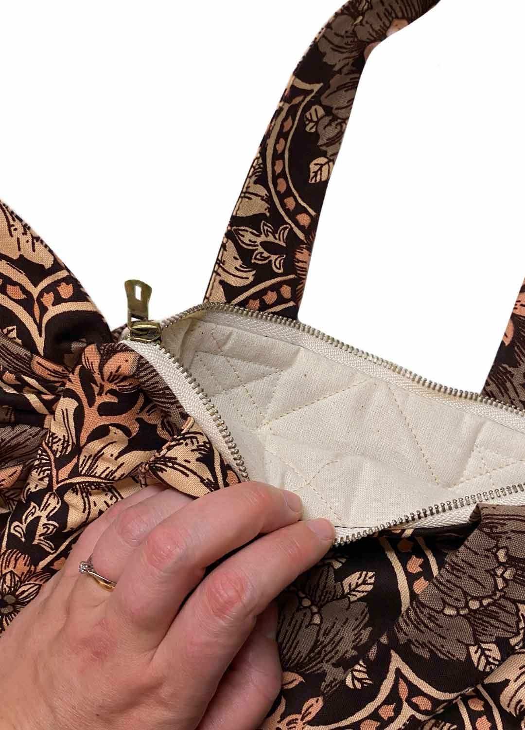 Design your own tote bag with your preferred features including quilted linings, pockets, fastenings, frills + bows