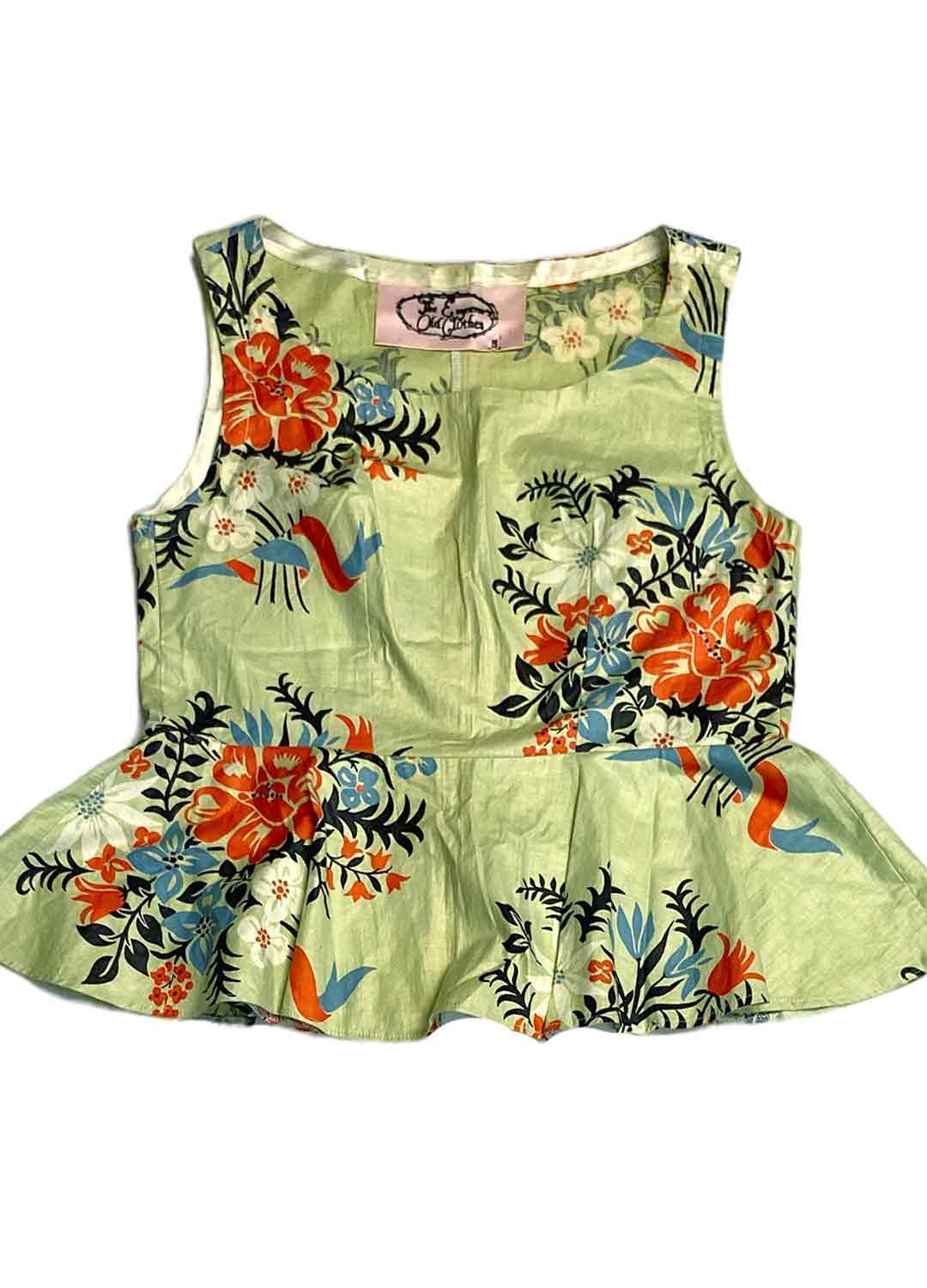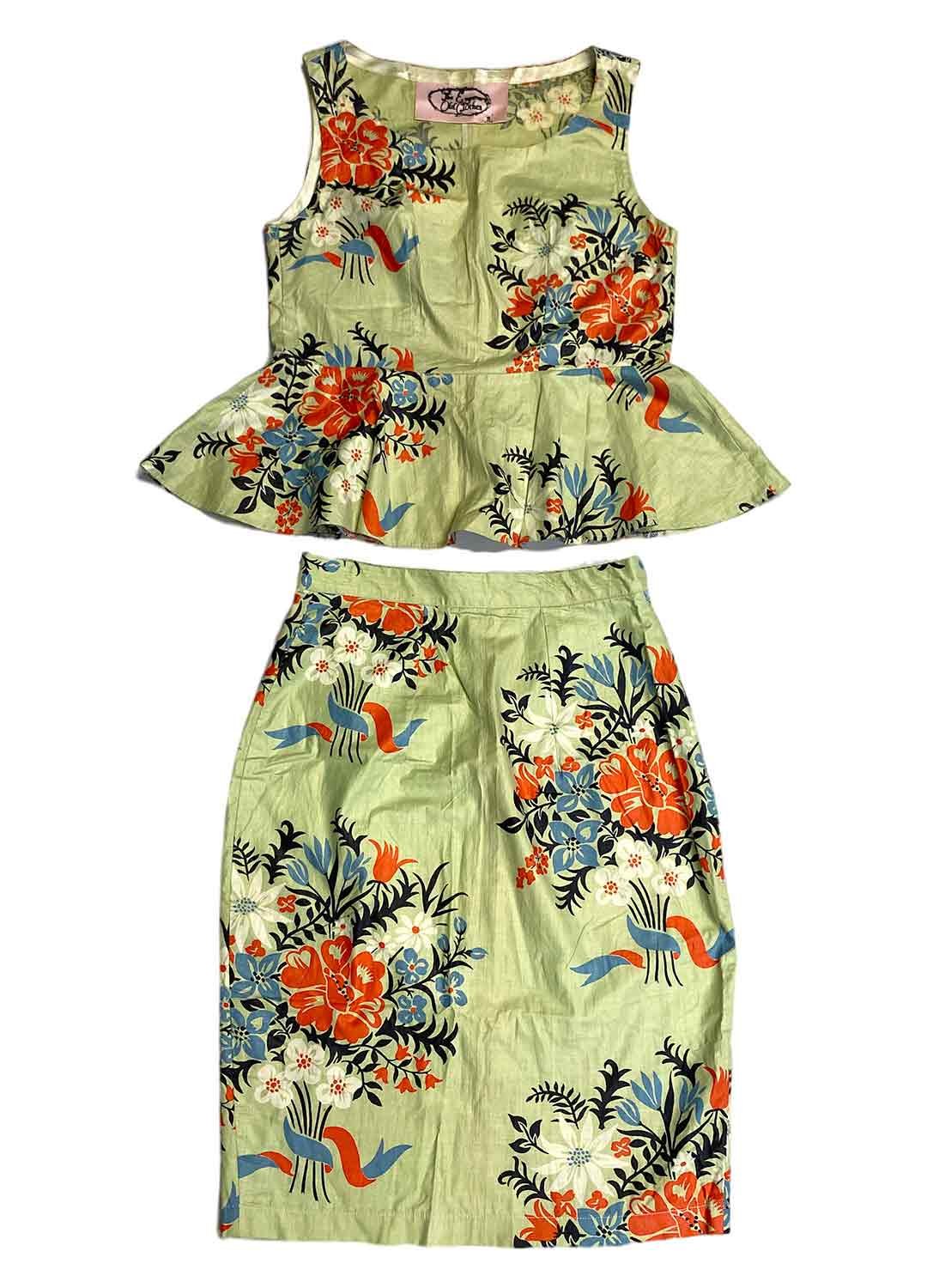 Green floral patterned cotton pencil skirt two piece – Ref 226/227 – Resale item – UK 10-12