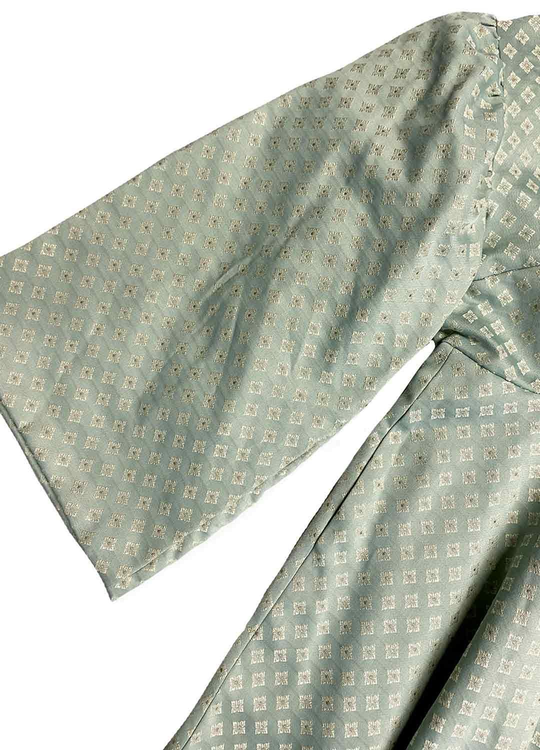 Mint floral medium weight brocade satin + ivory floral brocade satin