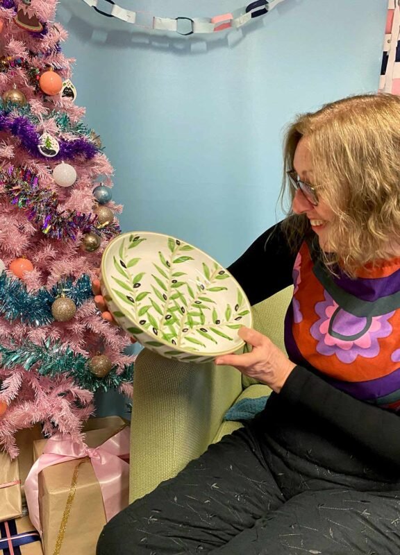 Large hand-painted Palestinian olive shallow serving dish from Spindle by Sisters | £65