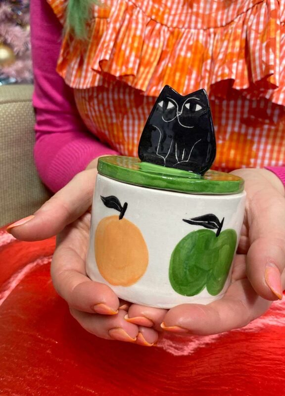 Black cat trinket dish with the lid by Anna Soba | £34