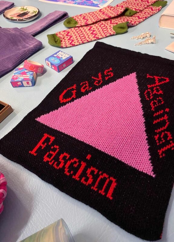 ‘Gays against fascism’ banner by Knit and Destroy x The Feminist Library | £40